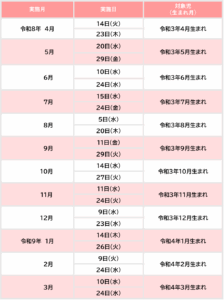 御殿場市ではお子様の健やかな成長を願って、令和8年4月より5歳児健康診査を実施することとなりました。対象の方には事前にご案内をお送りしますので、対象月に合わせて受診をお願いします。なお、お子様が5歳になる誕生月に健康診査を実施しております。