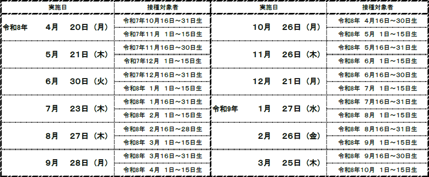 ※上記の対象者のほか、1歳未満の未接種者も接種できます。
